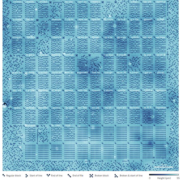 La parola chiave è miniaturizzazione, sempre più importante in un mondo che produce oltre un miliardo di gigabyte di nuovi dati al giorno. La soluzione al problema sta nell’infinitamente piccolo, come aveva teorizzato il fisico premio Nobel Richard Feynman. Fu lui, nel 1959, a lanciare per primo la sfida ai colleghi durante un convegno, ipotizzando che si potesse immagazzinare un’informazione per atomo. Proprio in suo onore, i ricercatori olandesi hanno usato la loro nuova tecnologia per memorizzare uno stralcio di quel discorso su un’area di soli 100 milionesimi di millimetro.