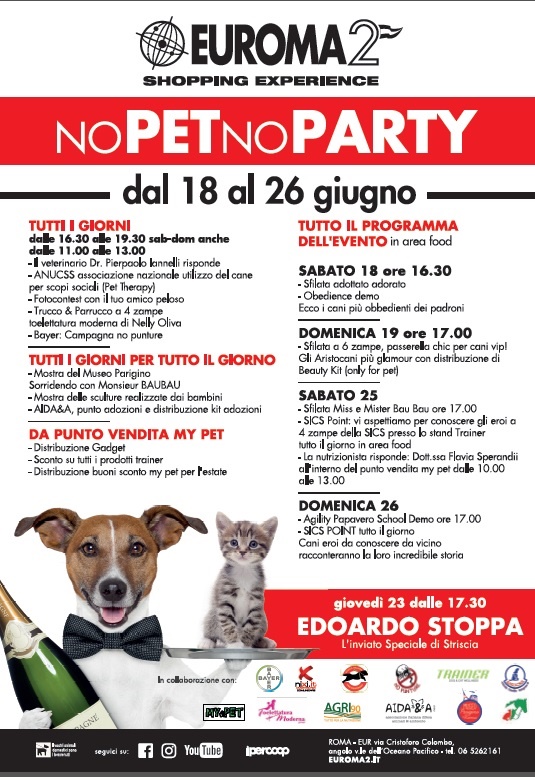 No Pet No Party, si inaugura a partire da sabato 18 Giugno e fino al 26 presso Euroma2.
