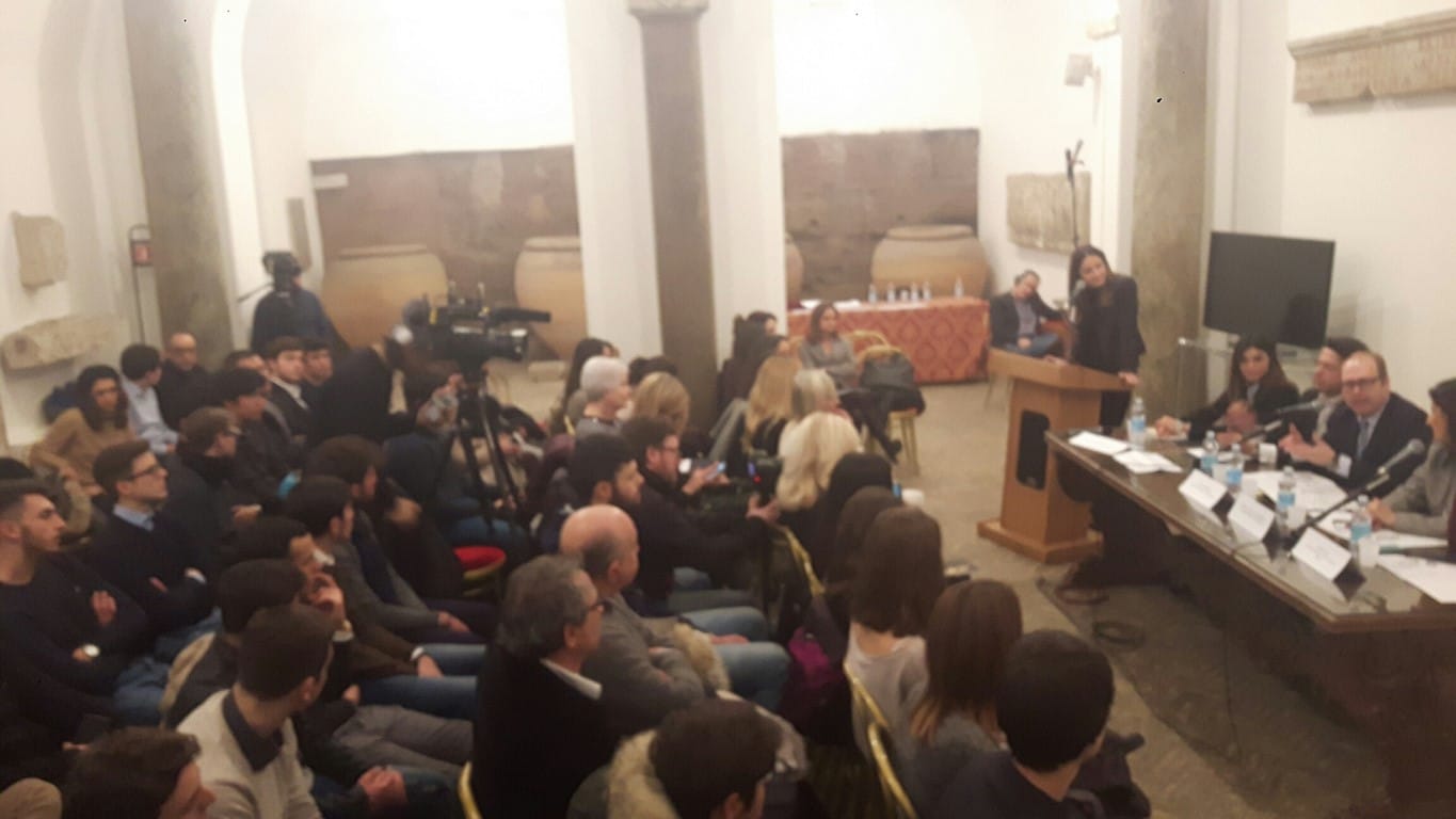 Sala Del Carroccio gremita in Campidoglio, per la Conferenza Stampa di presentazione del Premio Commercio Roma. Durante l’incontro sono intervenuti: la Dott.ssa Cristina Allegra del Mediocredito Centro Italia, il Dott. Luca Caramella di Euroma2, la Vicepreside dell’Istituto Tecnico Costruzioni Ambiente e Territorio “G. Valadier”, dell’ “IIS Salvini”, Natalia Barbato, il coordinatore Grandi Città di Roma Capitale Davide Barbato e il vincitore della precedente edizione Denis Paul. Presenti anche numerosi esponenti della rappresentanza politica territoriale, ma anche studenti, presidi e professori.